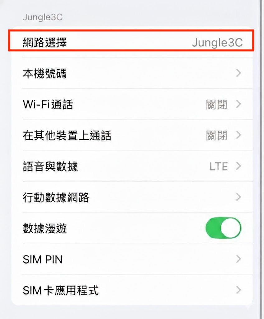 手動選擇網路(亦可將台灣門號的訊號與旅遊eSIM錯開)